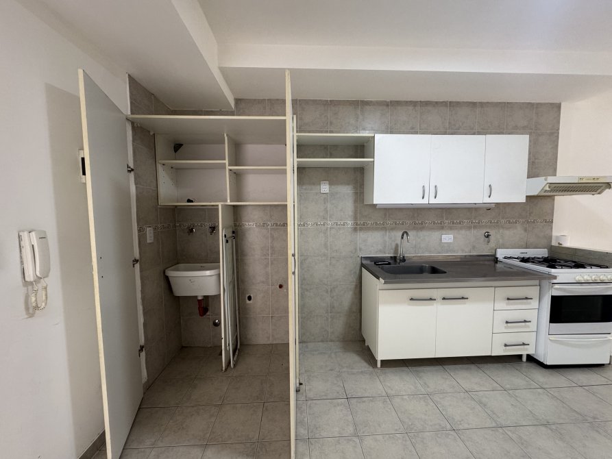 Cocina equipada, con un sector cerrado con puertas que funciona como espacio para el lavarropas y pileta.