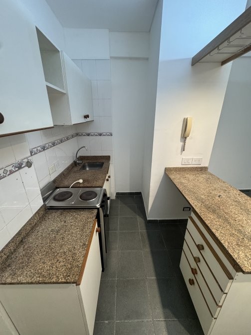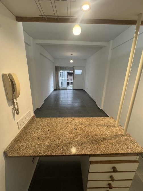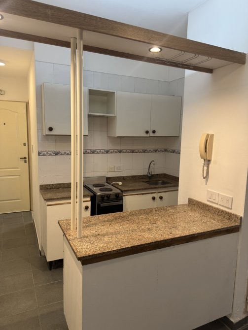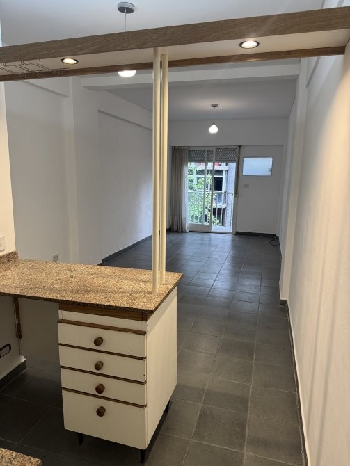 El ambiente principal es amplio y funcional, con cocina separada mediante barra desayunadora, lo que permite delimitar espacios sin perder integración ni amplitud. Cuenta con muebles de guardado..