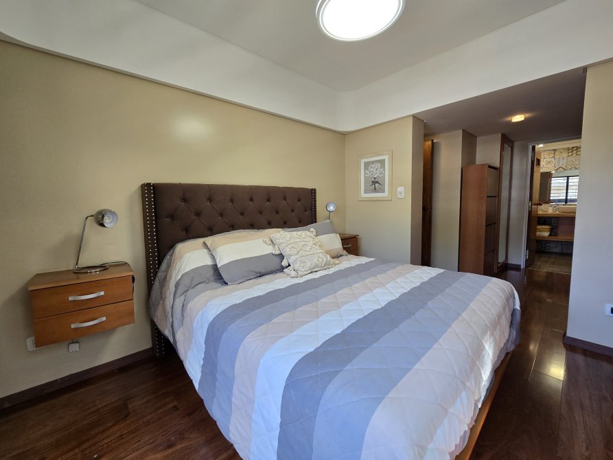 Dormitorio principal en suite, con balcón aterrazado y acceso a un patio descubierto.