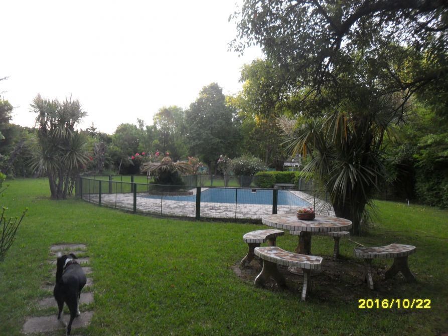 Casaquinta en un lote de 2000 m2, toda parquizada con gran piscina, quincho con parrilla y garage cubierto para 4 autos que se usa como SUM.
