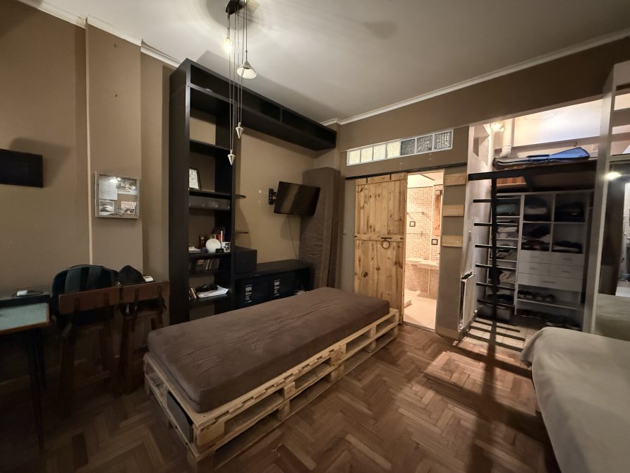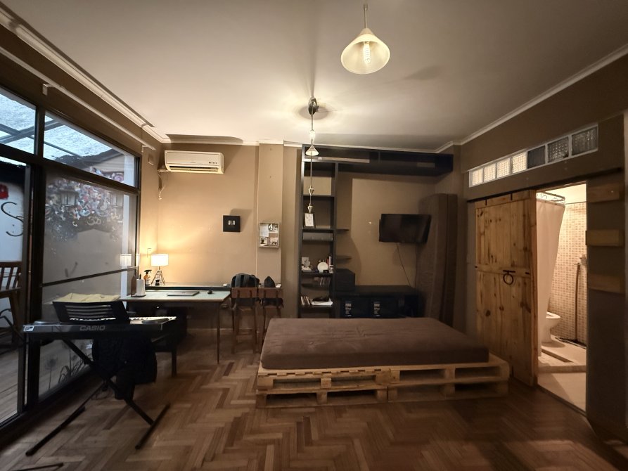 UBICADO EN UN PRIMER PISO POR ESCALERA, CON COCINA SEPARADA Y EQUIPADA, BAÑO COMPLETO, UN PATIO CON LAVADERO Y TECHO CORREDIZO, PLACARD, Y UN ENTREPISO CON ESPACIO PARA UNA CAMA, POSEE UN AIRE ACONDICIONADO FRIO/CALOR Y AGUA CALIENTE INDIVIDUAL.