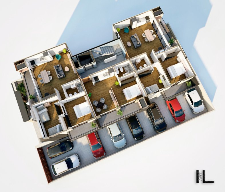PLANTA BAJA: HALL DE ENTRADA AMPLIO CON ASCENSOR DE ULTIMA GENERACION, EN EL EXTERIOR SE DESPLAZARAN 11 ESPACIOS VEHICULARES.-