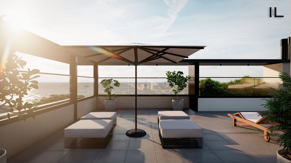 U.F.2: DEPARTAMENTO DE 4 AMBIENTES AL FRENTE, CON 71 M2 CUBIERTOS, CONSTA DE COCINA-COMEDOR LIVING, TRES DORMITORIOS Y DOS BAÑOS, DOBLE BALCON DE 3M2 CADA UNO PARA CADA HABITACION Y UN BALCON AL CONTRA FRENTE CON PARRILLA Y LAVADERO DE 4MTS, SUMANDO 10 M2 SEMI CUBIERTOS, TERRAZA COMPARTIDA DE 32 M2.-