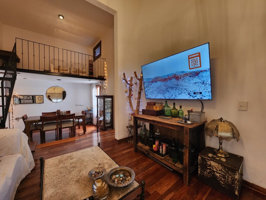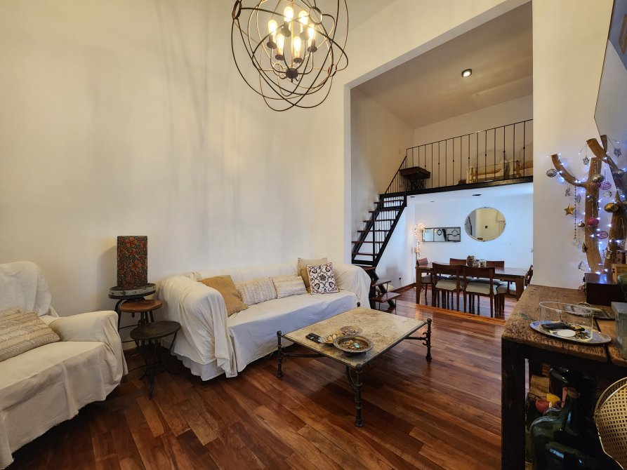Un amplio living con entrepiso, perfecto para adaptarlo como sala de estar o espacio de trabajo.