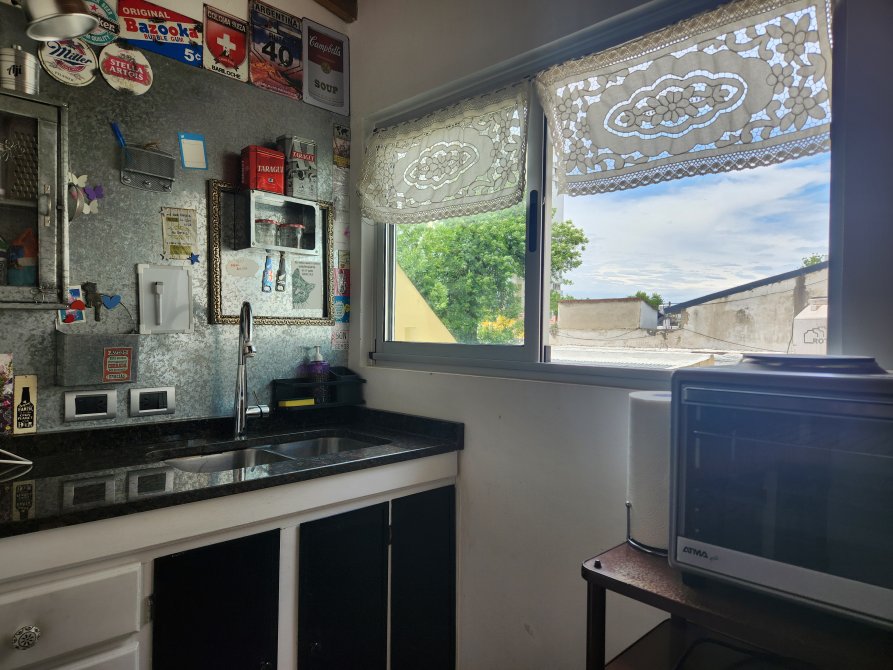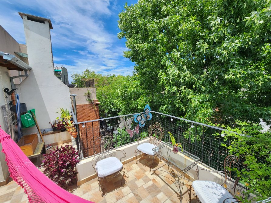 Terraza privada con acceso al gran protagonista: un quincho completo con parrilla, cocina integrada y lavadero.