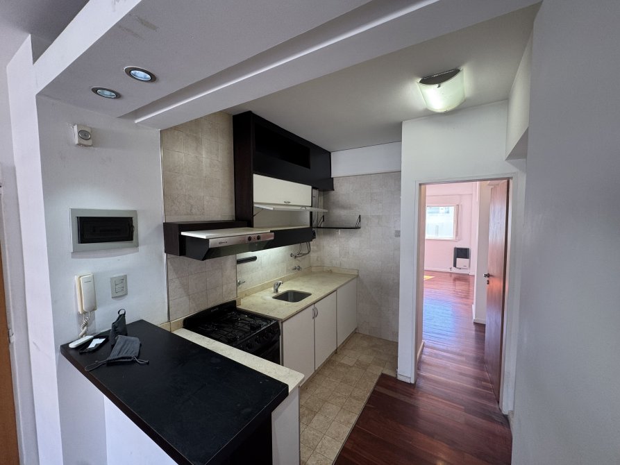 Ingreso por living-comedor, a su derecha barra divisoria con cocina a (gas) amoblada. Baño completo con posibilidad de colocar lavarropas. Habitación al contrafrente con ventana, placard y estufa.
