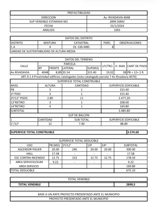 Posibilidad de construir 12 pisos + 2 retiros